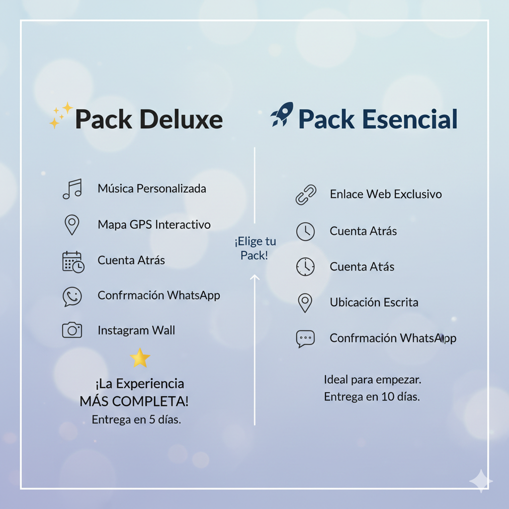• Enlace Web Exclusivo: Tu invitación tendrá su propio rincón en la red.